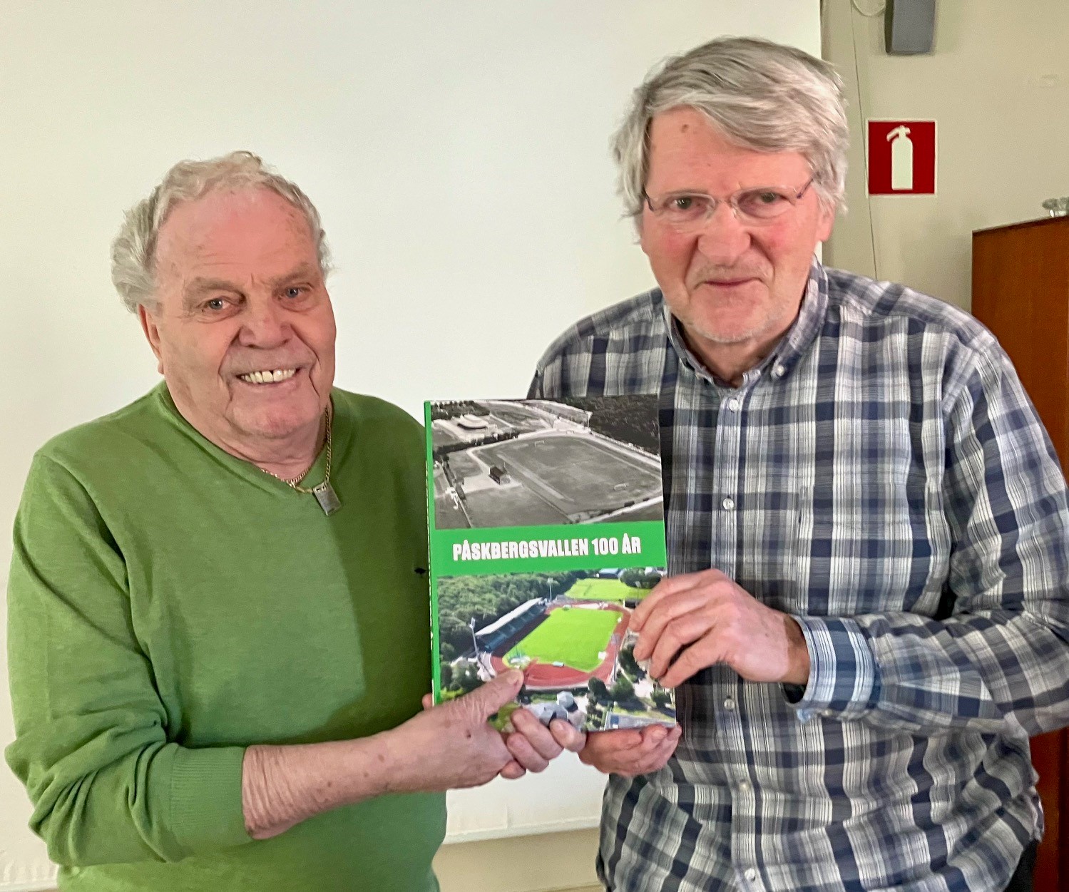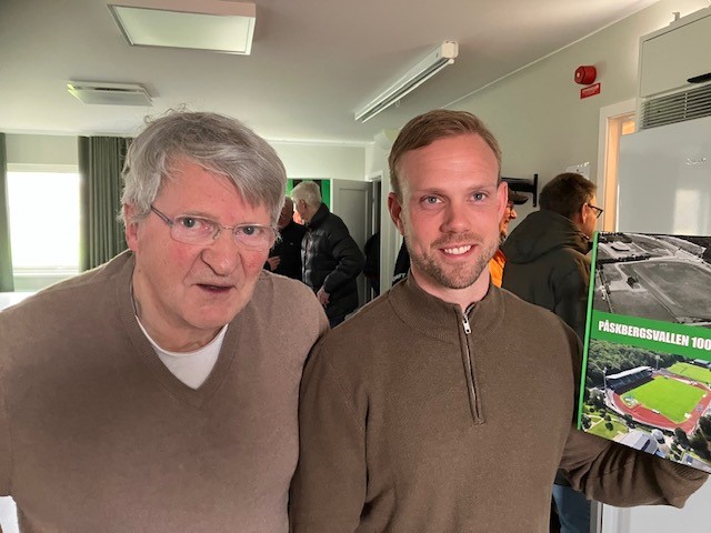 Som tack för sin medverkan överlämnade Errol Flysjö ett exemplar av boken Påskbergsvallen 100 år.